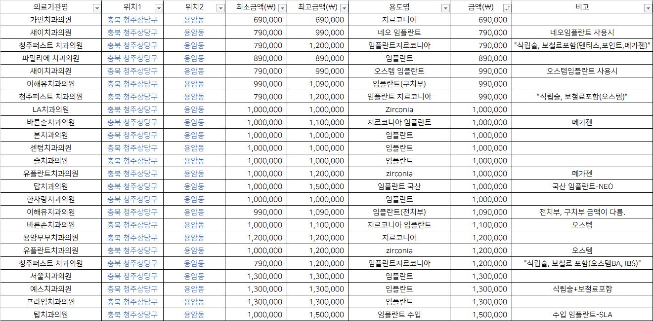 충북 청주 상당구 용암동 지르코니아 임플란트 치과 가격 top5 가인 새이 청주퍼스트