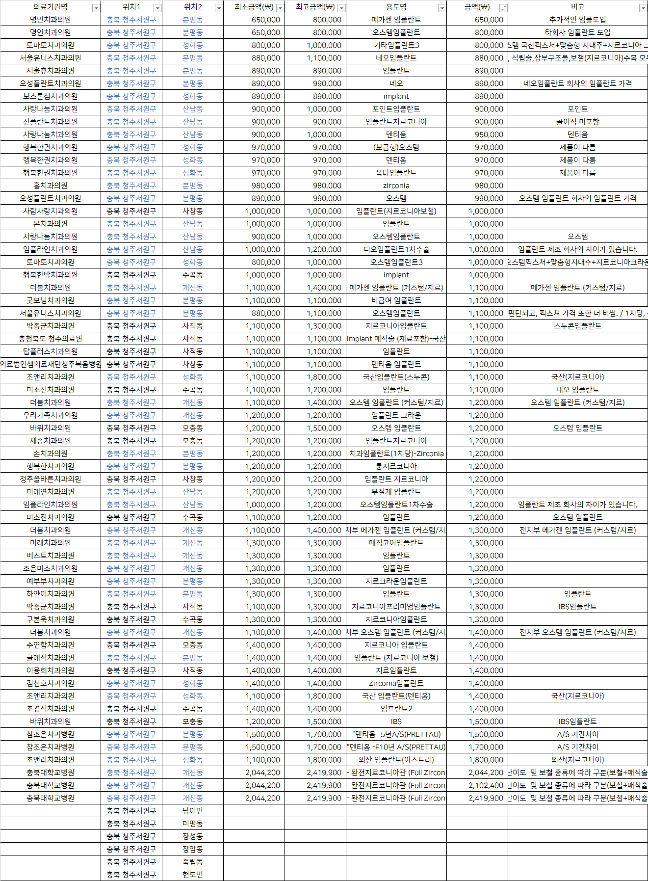충북 청주 서원구 지르코니아 임플란트 치과 가격 top5 명인 토마토 서울유니스