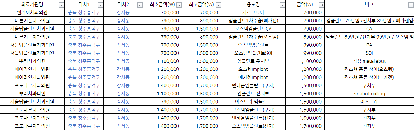 충북 청주 흥덕구 강서동 지르코니아 임플란트 치과 가격 top5 엠케이 바른기준 서울탑플란트